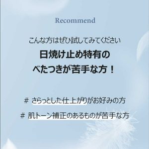 べたつかず肌のテカりを押さえ、重ね塗りをしても肌に負担のない軽い使用感。