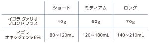 1剤(イゴラ ヴァリオ ブロンド プラス)と2剤(イゴラ オキシジェンタ6%)を1:2 ~ 3の割合で調合します。